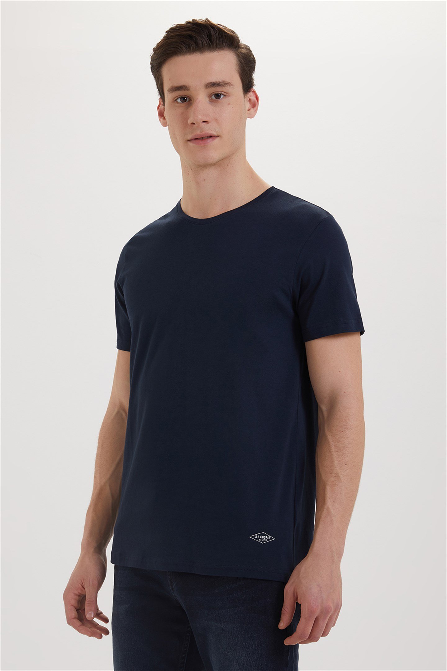 Kaleb Erkek %100 Pamuk Bisiklet Yaka T-Shirt Lacivert (202 LCM 242062)