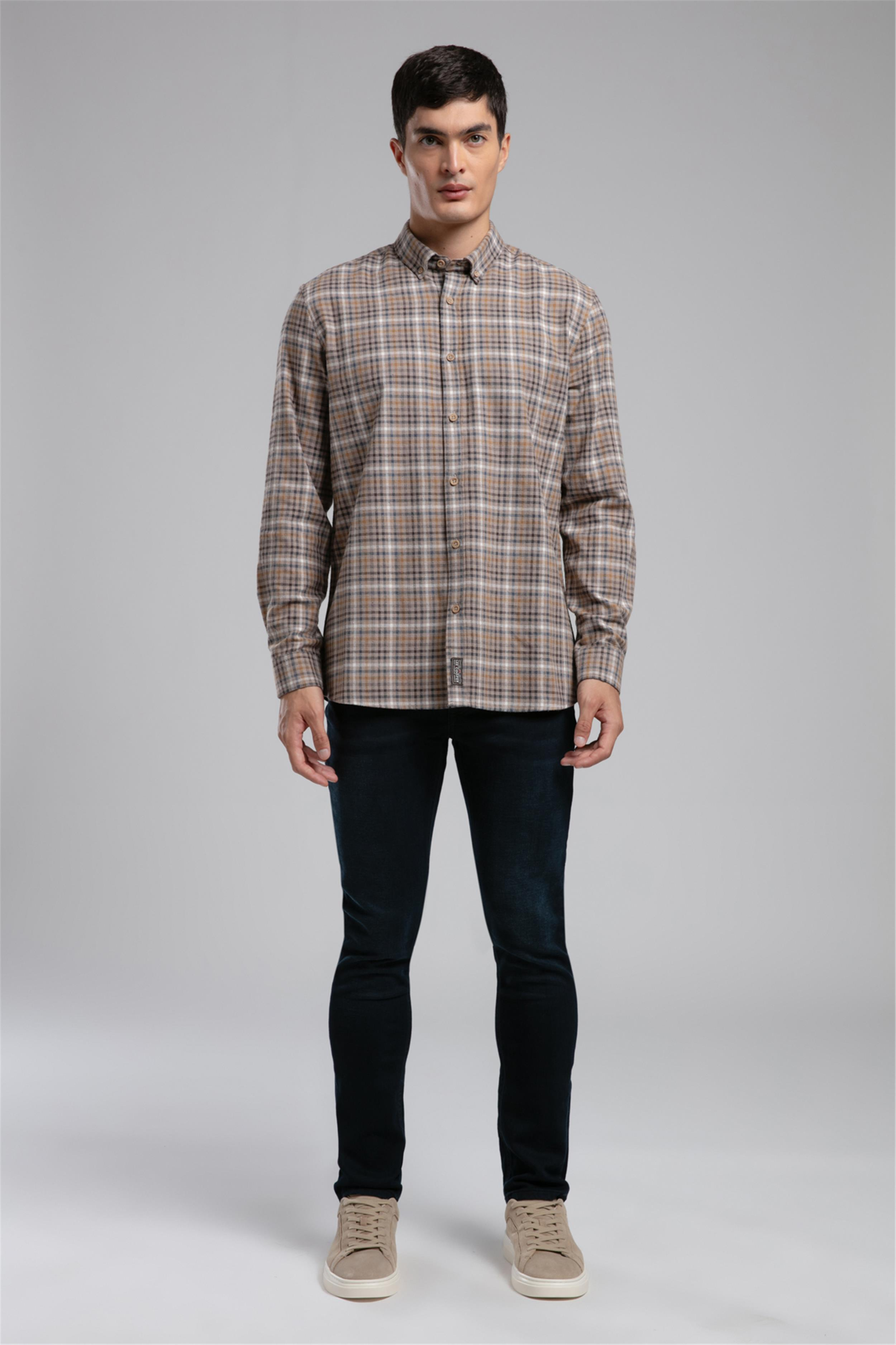 Lorse Erkek Dokuma Uzun Kol Gömlek Bej Ekose