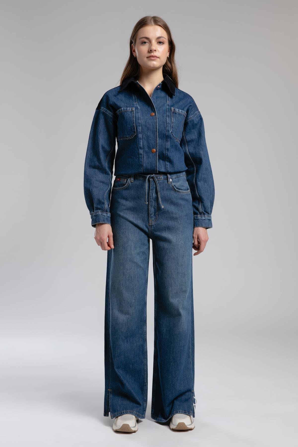 Maldiv Yüksek Bel Geniş Paça Kesim Geniş Paça Mavi Kadın Jean Pantolon (261 LCF 121015)